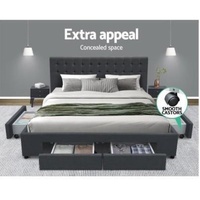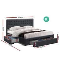 Artiss Bed Frame King Size Mattress Base With Storage Drawers Charcoal