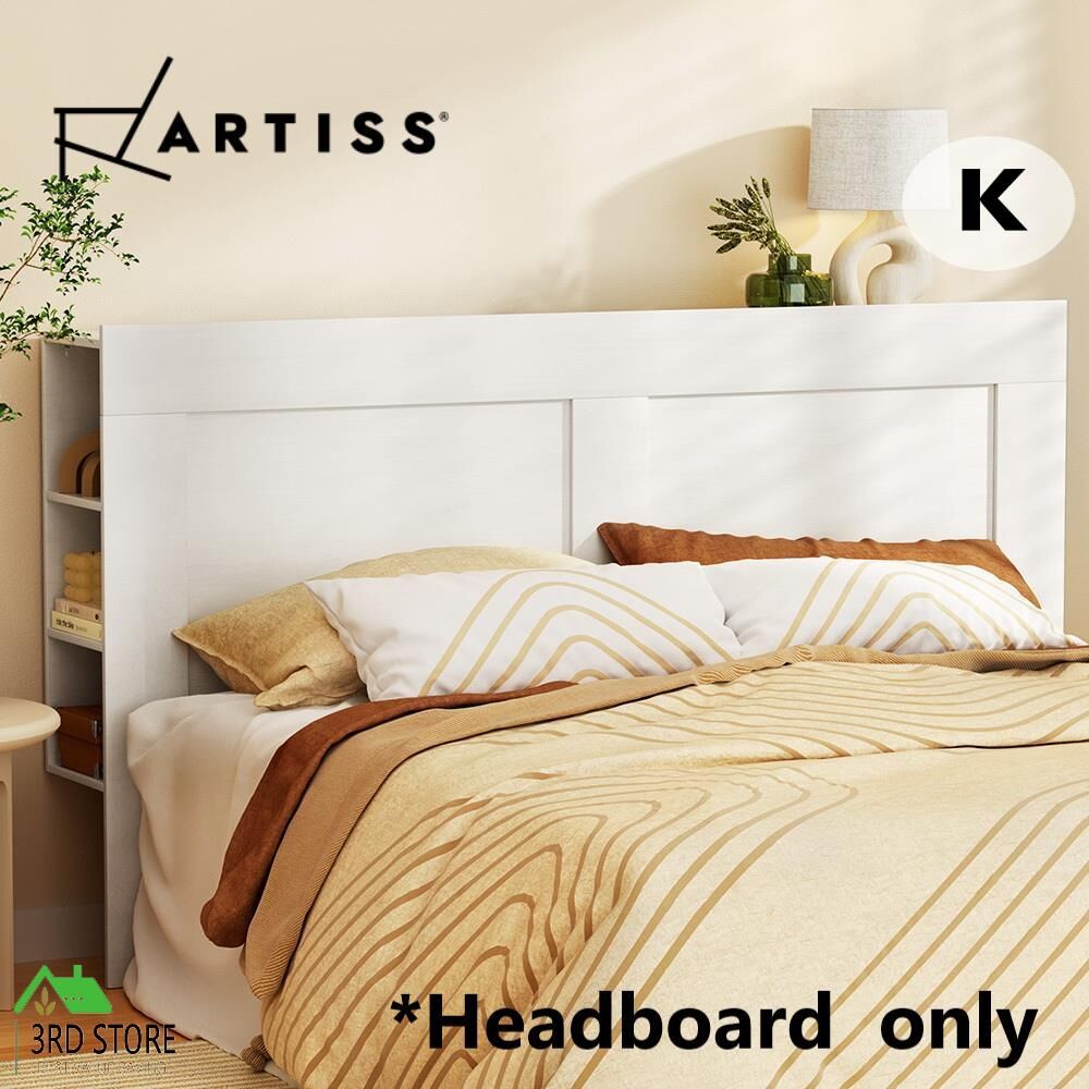 Artiss Bed Frame King Size Bed Head with Shelves Headboard Bedhead Base White