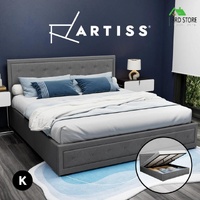 Artiss Bed Frame King Size Gas Lift Base With Storage Mattress Grey Fabric TIYO