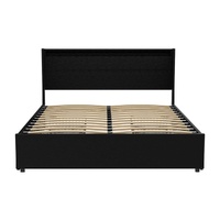 Artiss Bed Frame Queen Size LED with 4 Drawers Black DUNN