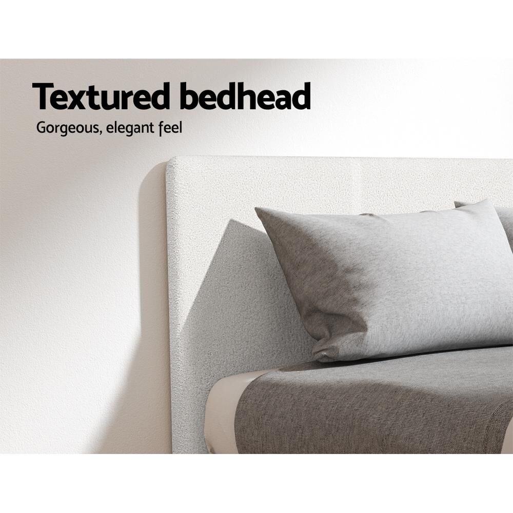 Add a touch of cosiness to your bedroom with our Artiss Neo bed frame. Wrapped in premium boucle fabric, the bed frame is aesthetically pleasing and extremely pleasant and smooth to touch. It will make you feel comfortable. The bed frame comes attached with a textured bed head. It has high-density foam padding, which makes it a cosy spot to sit back and relax, watch a movie, or read a book. Furthermore, the wooden arched slatted base allows the bed flex properly. It prevents partner disturbance. The slats are quite thick and will provide good support to your mattress. This bed frame has premium heavy-duty metal fixings and solid legs. So you don not have to worry about stability. It will keep the bed stable and prevent shaking. Additionally, this bedframe is available in single, king single, double, and queen and fits Australian standard size mattresses. And the gorgeous cream shade enables you to style it in any bedroom style. It will seamlessly blend in your home decoration.
