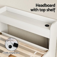 It's easy to sleep well on the Artiss Aura Bed Frame. Made from thick 15mm and 18mm particleboard with 12mm plywood slats and a white paper finish, the bed frame is designed for long-lasting use and longer-lasting sleep. The thick plywood slats and centre beams provide total support, and noise-free use, and improve the life of your mattress. It features a multifunctional design that allows you to use the bed for storage and to charge your phone overnight. Two drawers with smooth castor wheels can be installed on the left or the right for convenient storage. The headboard has smooth edges and plenty of room for your bedroom essentials. It also features two USB charging ports connected to a 200cm cable for convenience. While you power down for the night, you can power up with the Aura Bed Frame from Artiss.