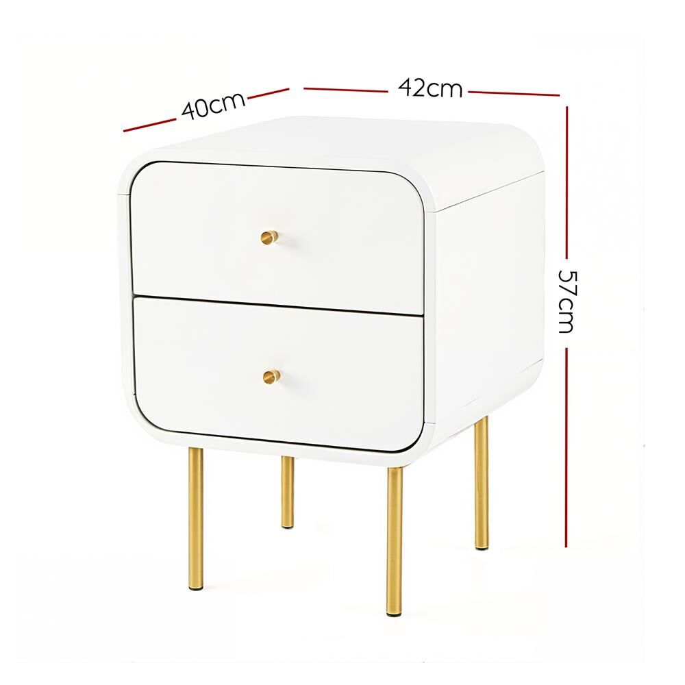 Bring style and functionality to your bedroom with our Artiss Bedside Table, this bedside table boasts ample storage with two drawers, adorned with sleek metal handles. Conveniently keeping your essentials within arm's reach, it's safety rounded corner complements your interior while enhancing your nighttime routine. The easy-clean surfaces resist stains, perfect for busy households.It effortlessly fits into living rooms, lounges, bedrooms, or studio apartments.