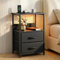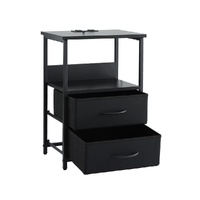 Artiss Bedside Table LED Nightstand Charging Station 2 Drawers Foldable Black