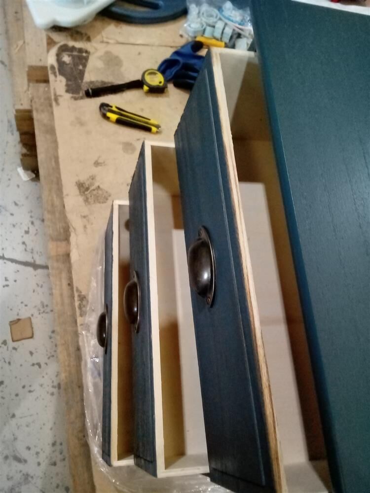 Three wooden drawers