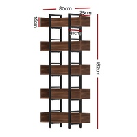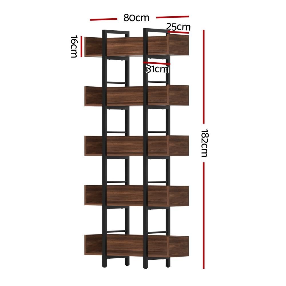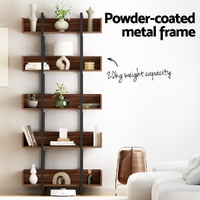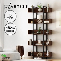 Artiss Bookshelf 5-Tier Bookcase Display Shelves Metal Storage Stand Rack Walnut