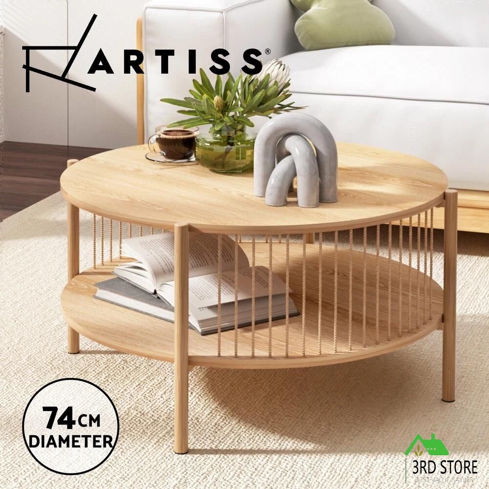 Artiss Coffee Table 2-Tier Storage Side Table Bedside Rustic Storage Shelf Wood