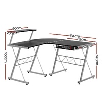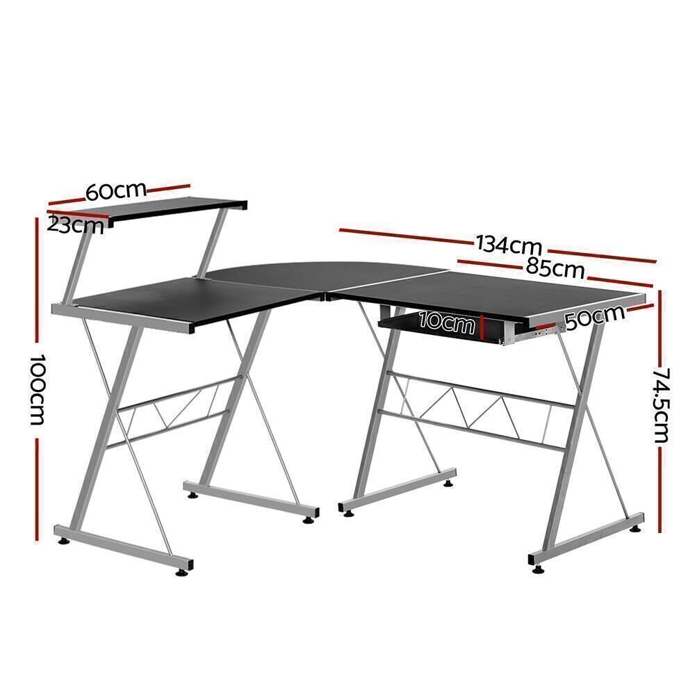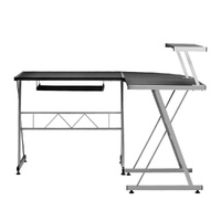 Artiss Office Computer Desk Corner Table Metal Keyboard Tray Top Shelf Black