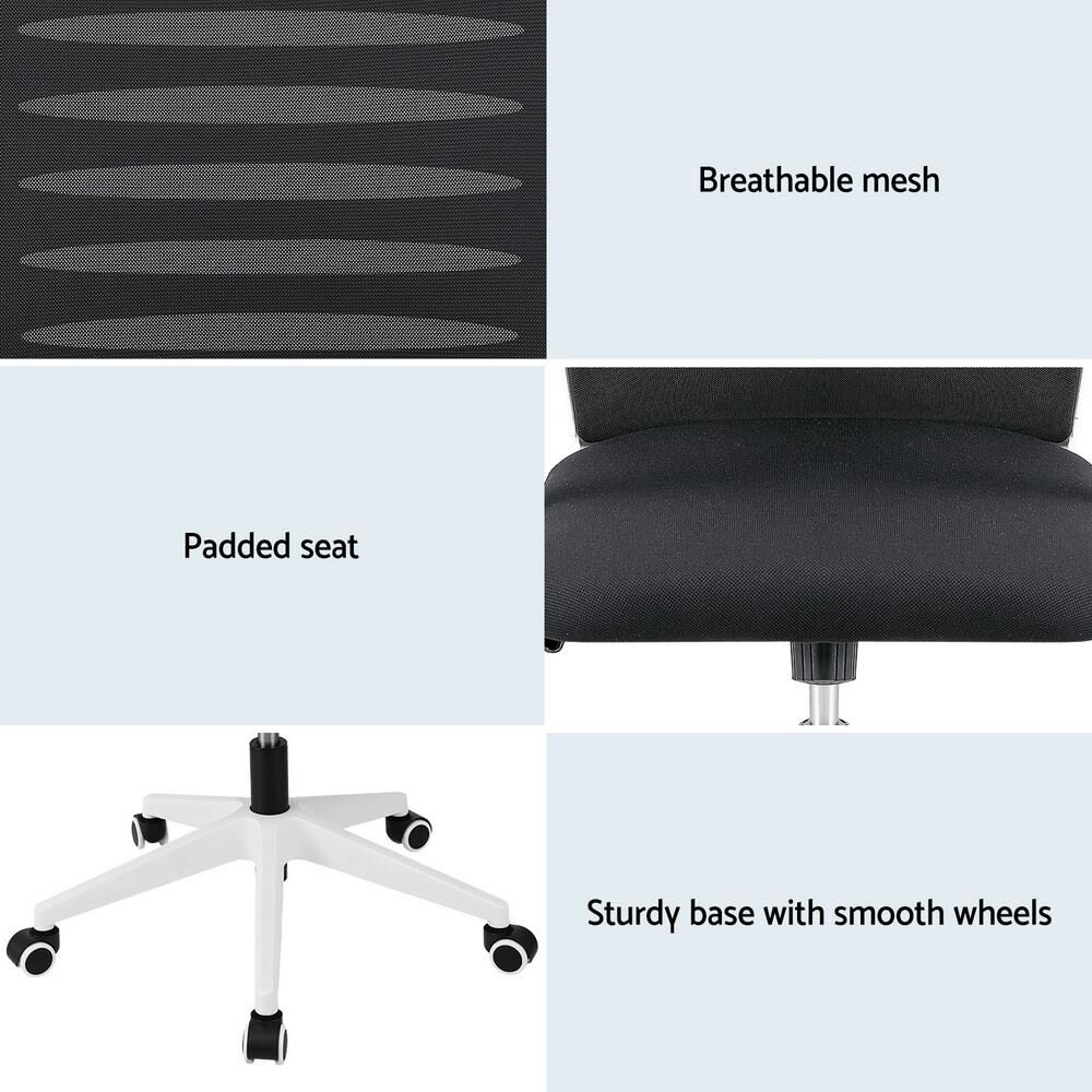 Artiss Ergonomic Office Chair Mesh Computer Desk Chairs with Lumbar Support, Height Adjustment Swivel Chair Mid Back for Home Office Study, Black and