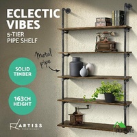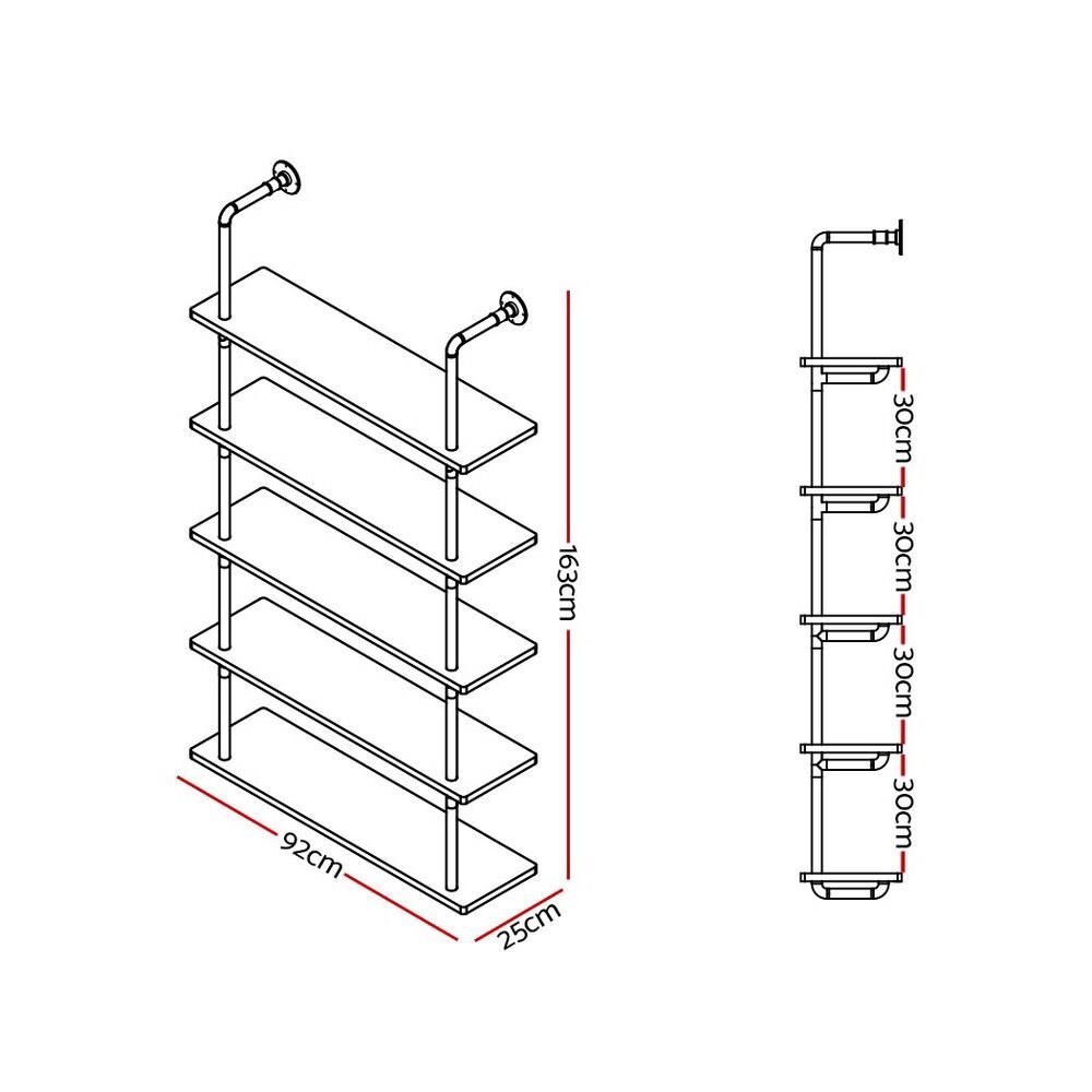 With its cool industrial vibes, the Artiss 5-tier pipe shelf is full of character and practicality. Use it to create more storage space in the home, in the garage, in the cafe or just about anywhere where empty space is available on a wall. Made from quality pine wood and strong metal pipes, the entire ensemble is strong and durable. Each 2cm thick shelf has a weight capacity of 10kg and meticulously finished for flawless looks and style. Not least, the metal pipes are each 25mm in diameter and 1.3mm thick and given a bold appearance for better industrial authenticity.