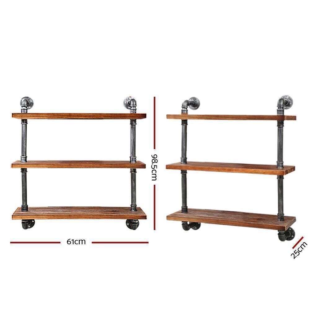 Artiss 3 Level Rustic Industrial DIY Pipe Shelf Display Wall Bookshelf Vintage