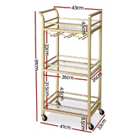 Artiss Kitchen Island Cart Trolley Rolling Serving Storage Wine Glass 43cm Gold