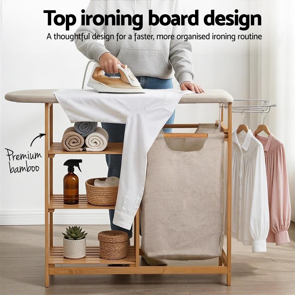 Artiss Laundry Basket Hamper with Ironing Board Bamboo