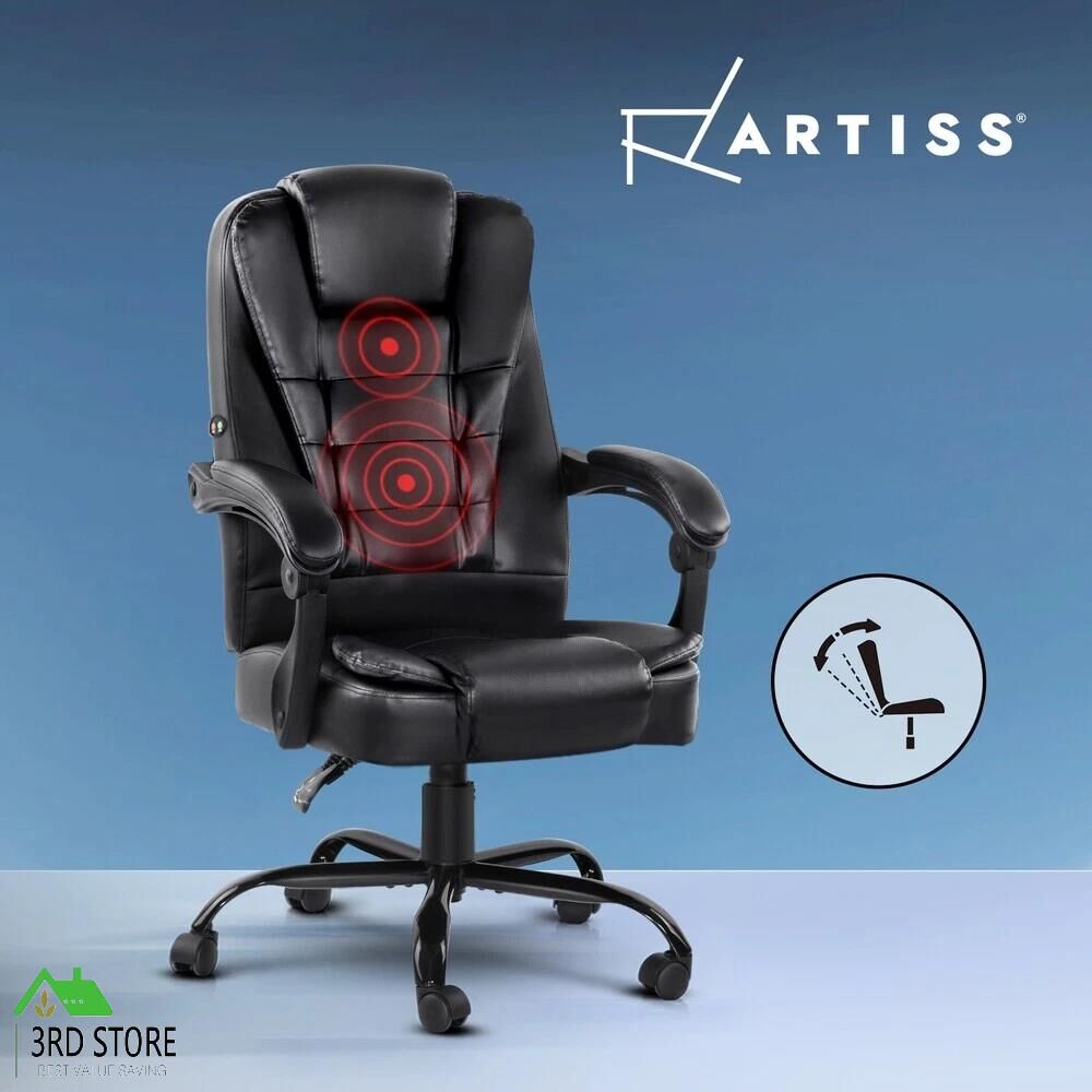 Artiss Massage Office Chair Gaming PU Leather Recliner Computer Chairs Black