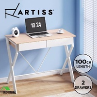 Artiss Metal Desk with Drawer - White with Oak Top