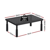 Organise your workspace and boost your comfort with the Artiss adjustable monitor stand. This sturdy metal riser offers three fixed height settings (10cm, 12cm, 14cm) for quick, manual adjustment to achieve the perfect eye-level viewing angle, helping reduce neck strain. With a 20kg load capacity, it securely lifts your monitor or laptop, freeing up the valuable desk space underneath for storing keyboards, notebooks, or other essentials. Setup is incredibly simple—no tools needed. An ideal, functional addition to any home office, study desk, or workspace.
