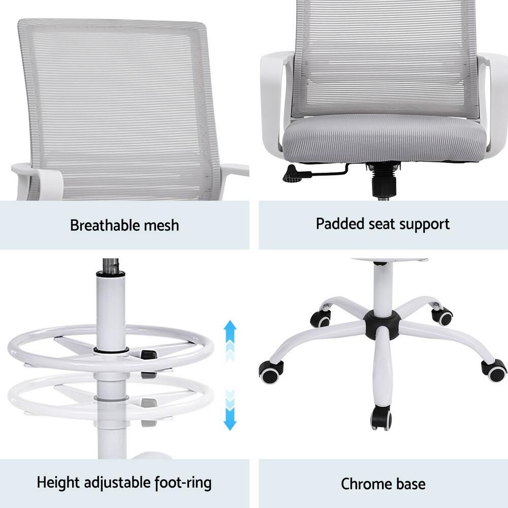 Artiss Office Chair Drafting Chairs Stool Computer Desk Studios Mesh White