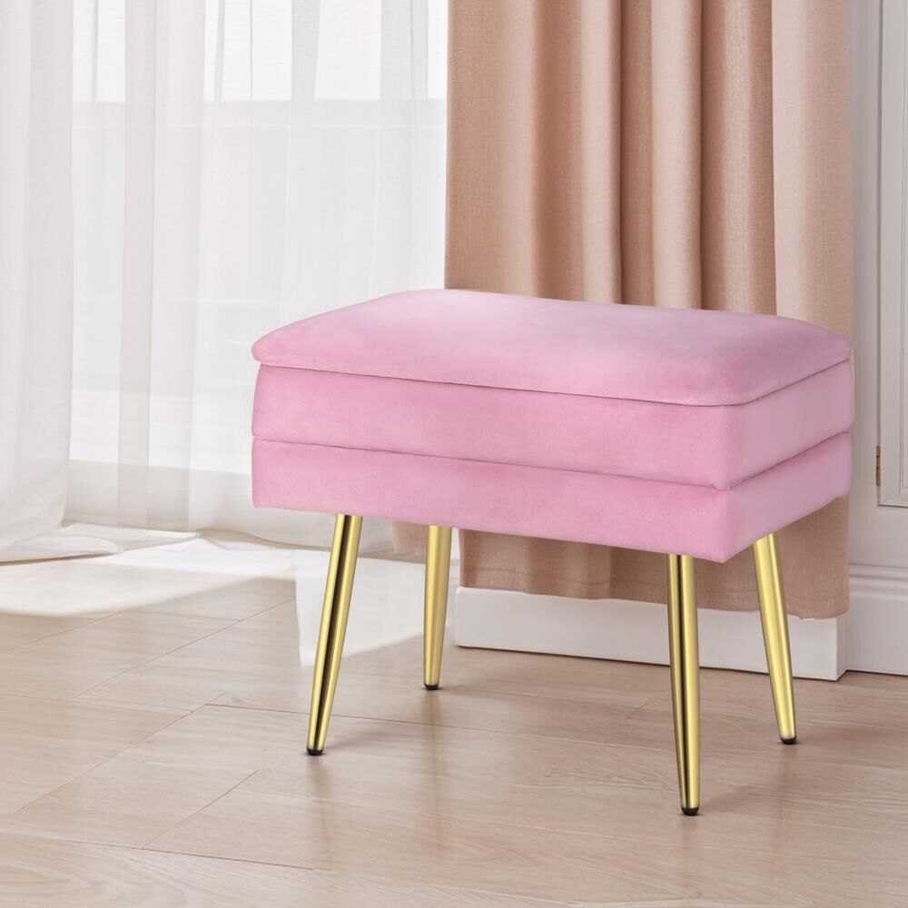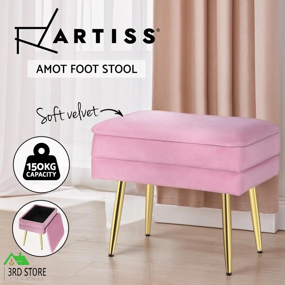 Artiss Ottoman Storage Foot Stool Vanity Bench Velvet Foot Rest Padded Seat Pink