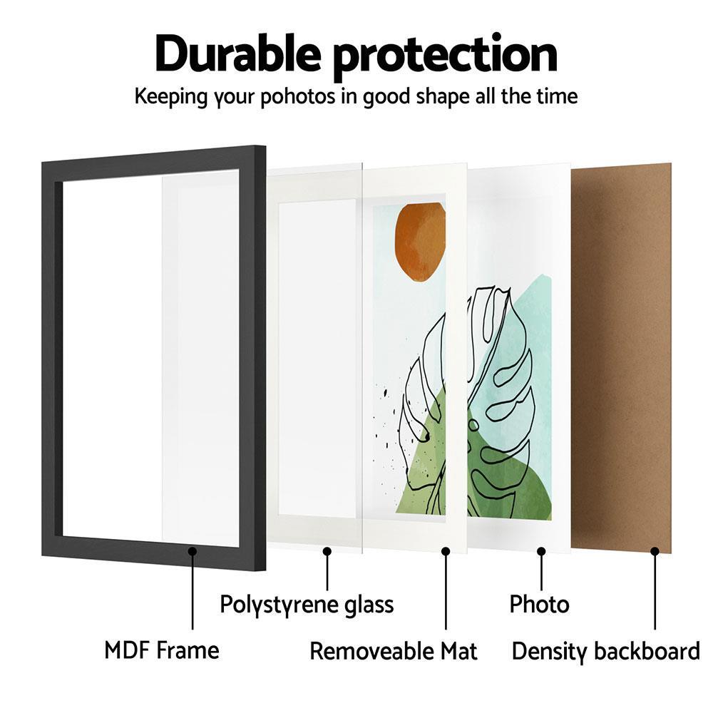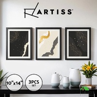 The Artiss Photo Frame 3-Piece Set offers an elegant way to showcase your 10"x14" prints. Each frame features durable construction with polystyrene glass, suitable for wall hanging in both portrait and landscape orientations.
