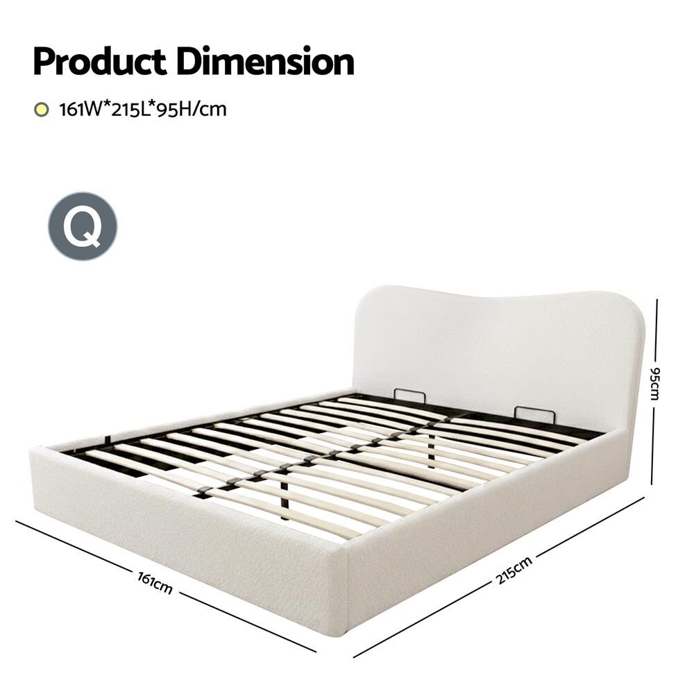 Artiss Queen Bed Frame with Gaslift Storage Wooden Platform Mattress Base Boucle Upholstered White
