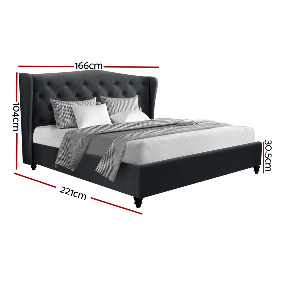 Artiss Bed Frame Queen Size Base Mattress Platform Fabric Wooden Charcoal