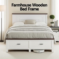 Artiss Queen Wooden Bed Frame with 2 Drawer Platform Bed with 108cm Solid High Headboard White Bed Base for Bedroom Easy Assembly