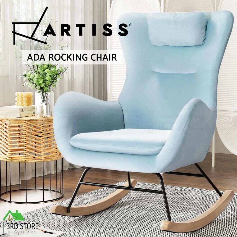 Artiss Rocking Chair Velvet Armchair Feeding Chair Blue