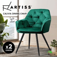 Artiss Calivia Dining Chairs Kitchen Chairs Upholstered Velvet Set of 2 Green