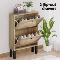Artiss Shoe Rack Storage Cabinet Organiser 2 Drawers Cupboard Rattan 6 Pairs