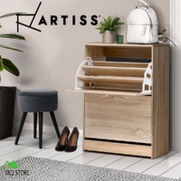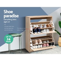Artiss Shoe Cabinet Shoes Storage Rack 24 Pairs Organiser Shelf Cupboard Oak