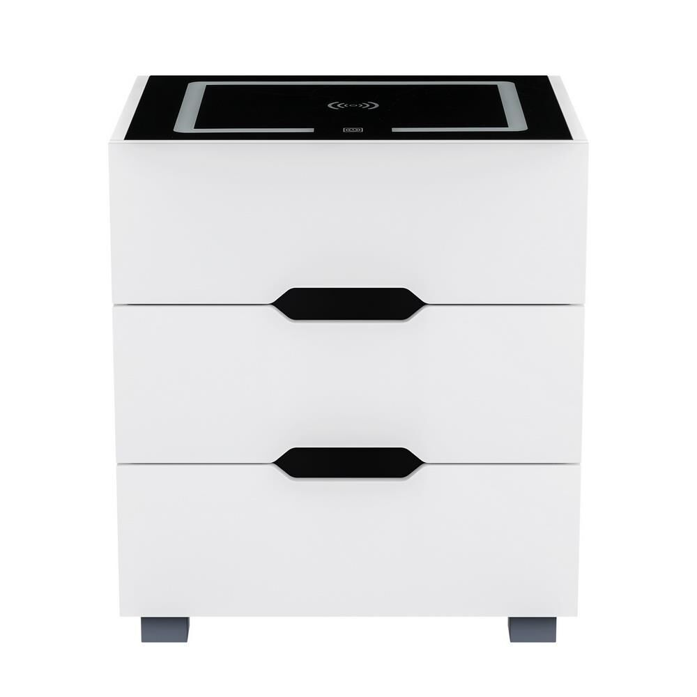Upgrade your living space with the Artiss Adad Smart Bedside Table. The table allows you to charge your phone wirelessly or via USB. Constructed from quality particleboard and topped with a tempered glass tabletop, the smart table is perfectly stylish and durable. The three drawers feature elegant and minimalist gap handles and ample storage space for all your night-time essentials. With one USB and one type C charging port, you can charge your devices both wirelessly and wired. Adjust the light-up charging panel to achieve the perfect ambience for sleep. The plastic legs will keep your table standing, while anti-slip pads keep the piece in place and protect your floors. Easy to assemble and even easier to maintain, you'll love the style and functionality of the Adad Smart BedsideTable from Artiss.