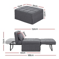 Artiss Sofa Bed Lounge Convertible Ottoman 1 Seater Couch Recliner Linen Grey