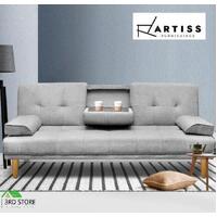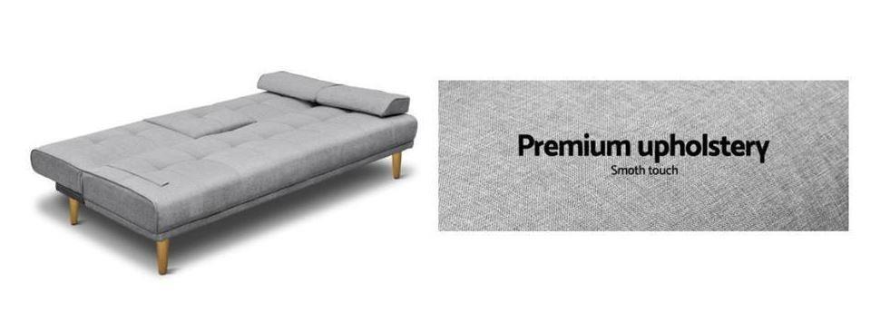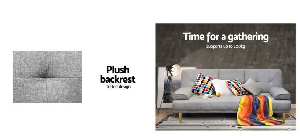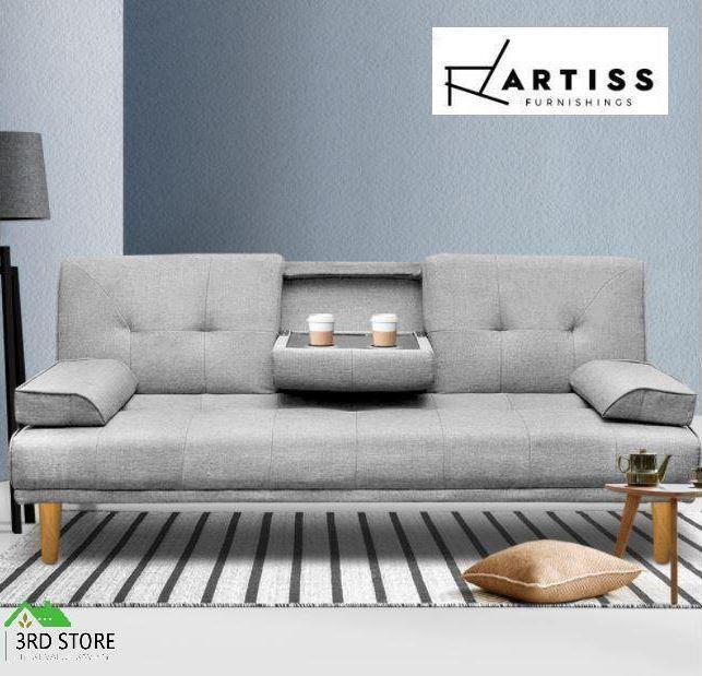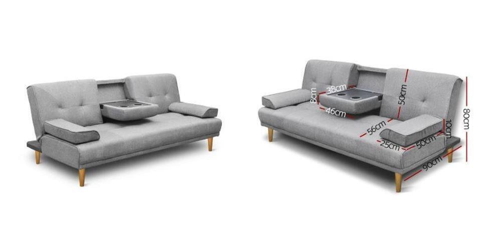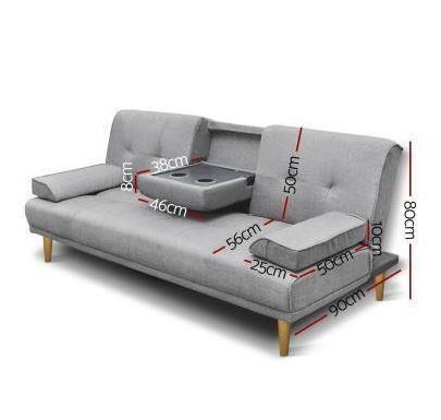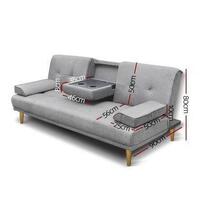 Artiss Sofa Bed Lounge Futon Couch Beds 3 Seater Cup Holder Fabric Grey