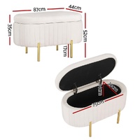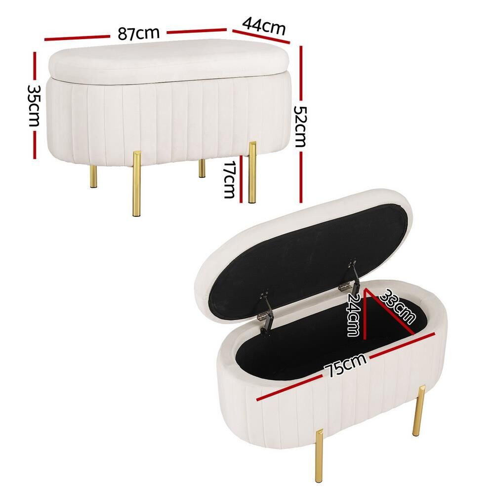 Artiss Storage Ottoman Blanket Box 87cm Velvet Oval White
