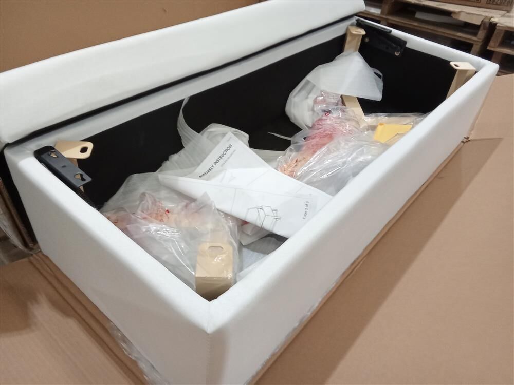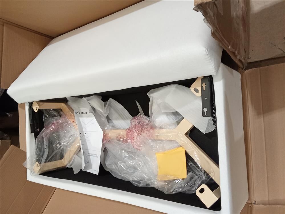 This Artiss faux linen storage ottoman features a sturdy plywood and MDF frame, high-resilience foam padding, and ample storage. With durable metal hinges, a metal criss-cross base with plastic pads, and easy assembly, it combines style and functionality.