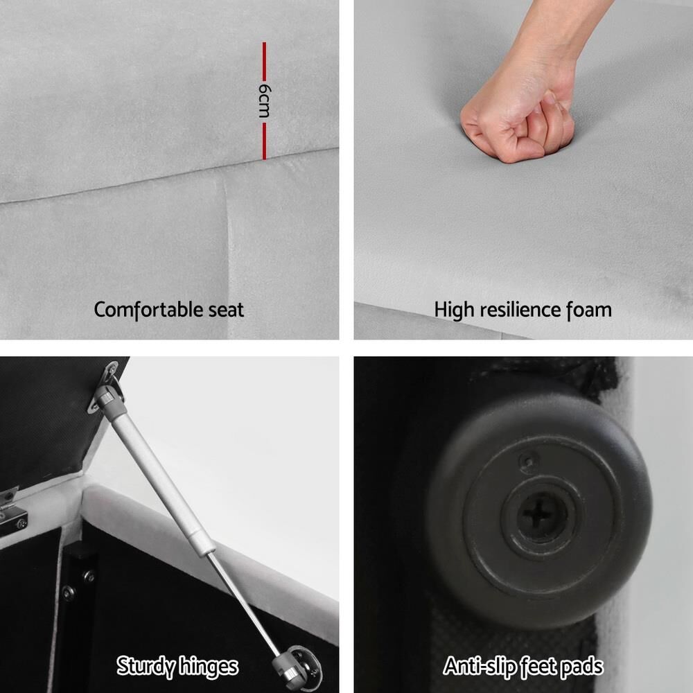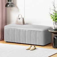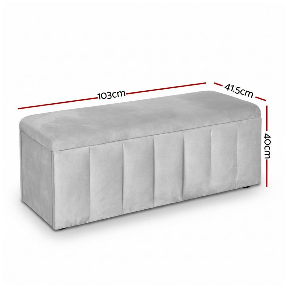 Artiss Storage Ottoman Blanket Box Velvet Grey 103cm