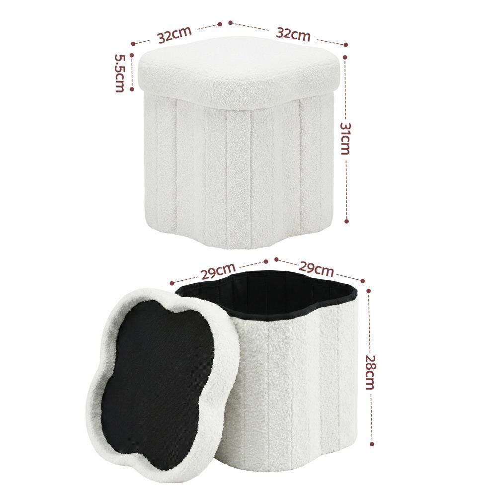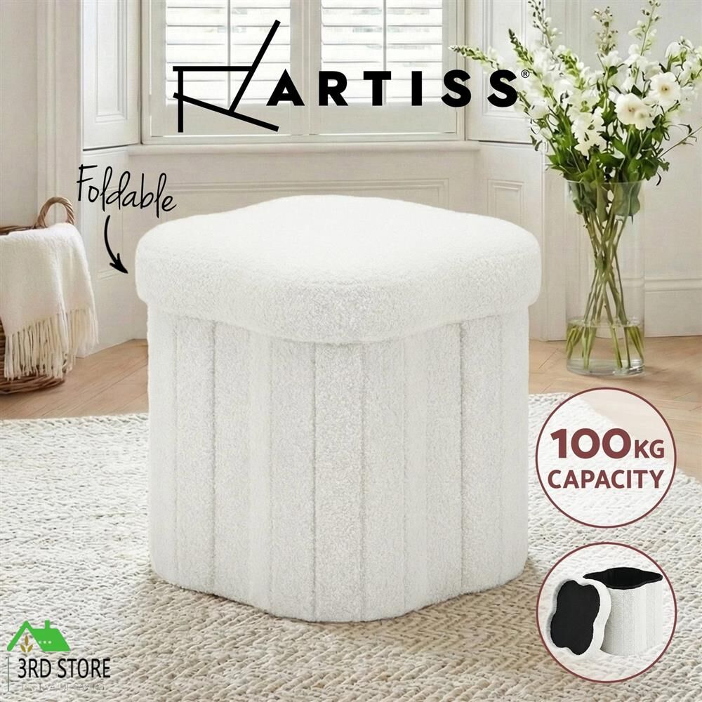 Artiss Folding Storage Ottoman Rest Foot Stool Foldable Boucle Fabric White
