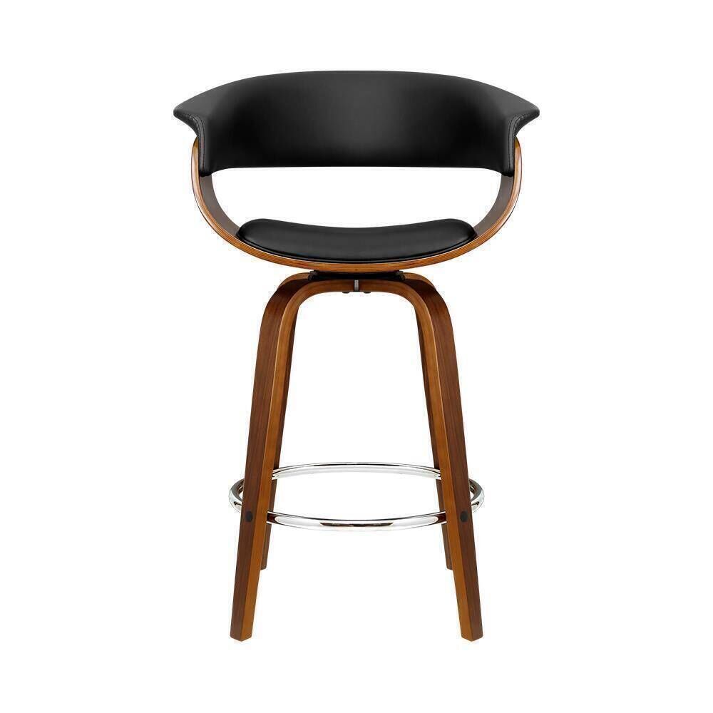 Wood, metal and deluxe PU leather in total harmony to create a luxe feel. Meticulously crafted with solid plywood with a stunning walnut finish for the frame, the bar stool features a thick padded faux leather seat that rotates fully, a mid-height backrest which provides ample support while the anti-slip floor protectors at the bottom of the legs ensure no scratches are left on the floor.
