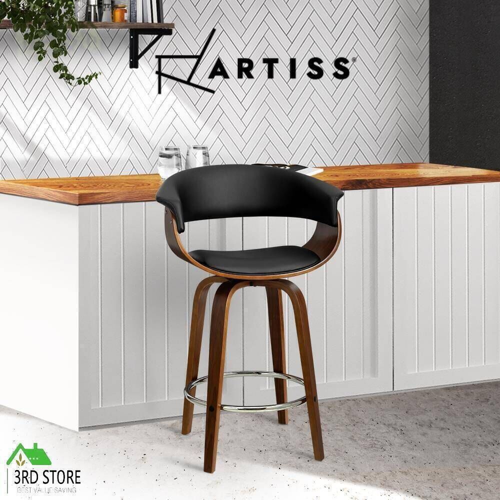 Artiss Bar Stools Wooden Bar Stool Swivel Kitchen Dining Chairs Leather Black
