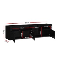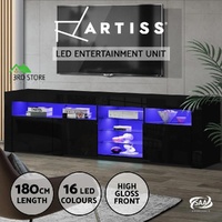 Artiss TV Cabinet Entertainment Unit Stand RGB LED Gloss 3 Doors 180cm Black