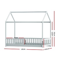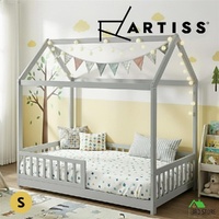 Artiss Wooden Bed Frame House Shape Pine Timber Base Single Size Platform Grey