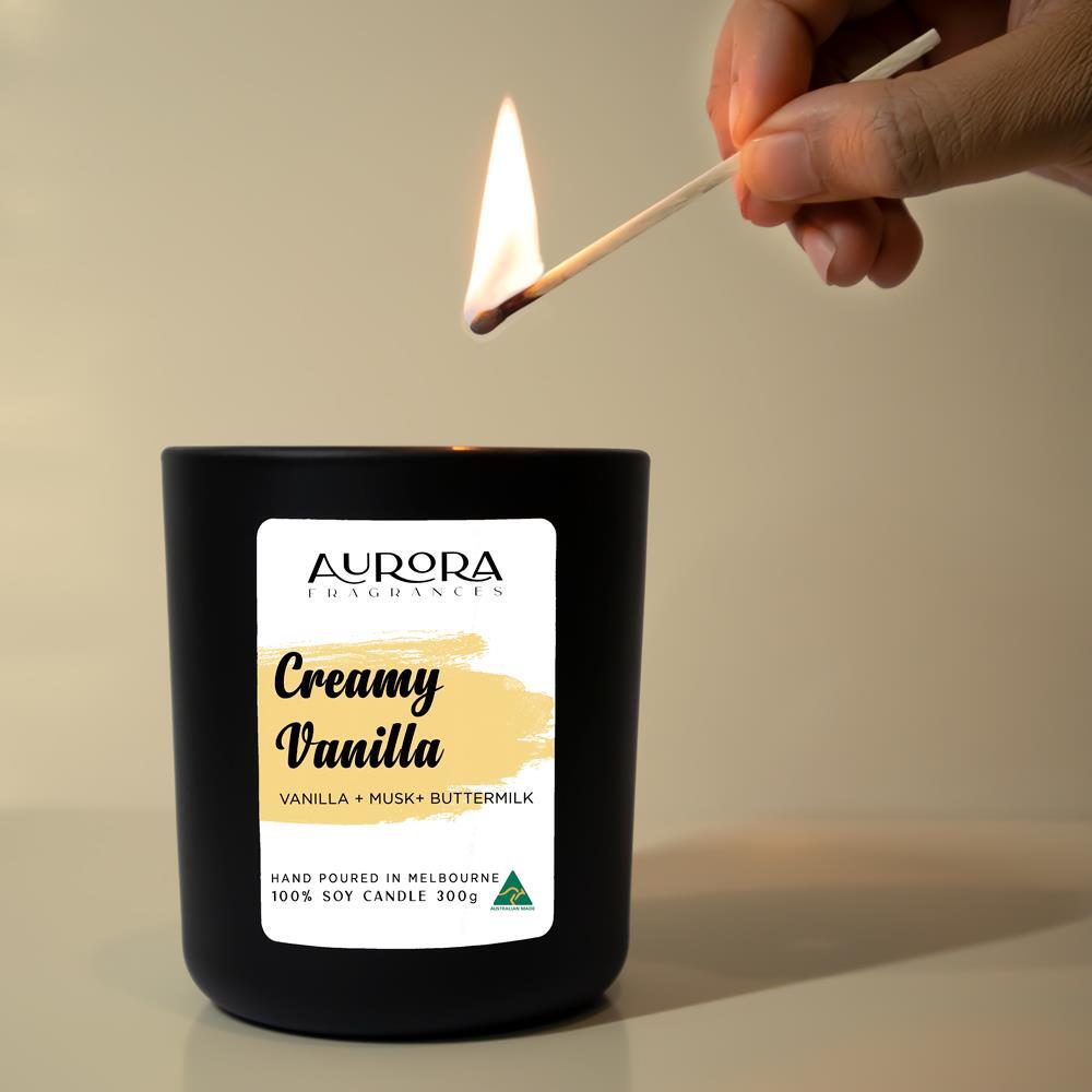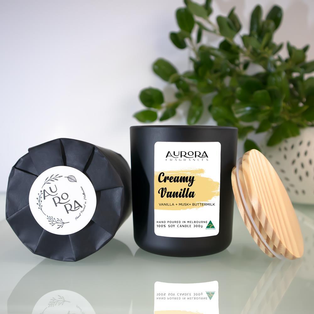 Aurora Creamy Vanilla Soy Candle Australian Made 300g