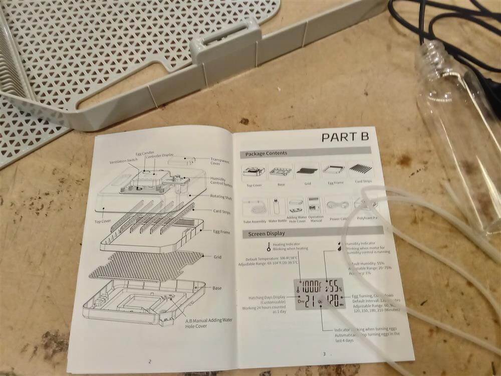 - Consistent Humidity & Auto Egg Turning and Stop: A single water bottle is used to maintain stable humidity without needing to open the incubator. It automatically turns the eggs every two hours to promote uniform development; remember to remove the turner during the last three days to ensure successful hatching.