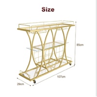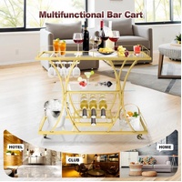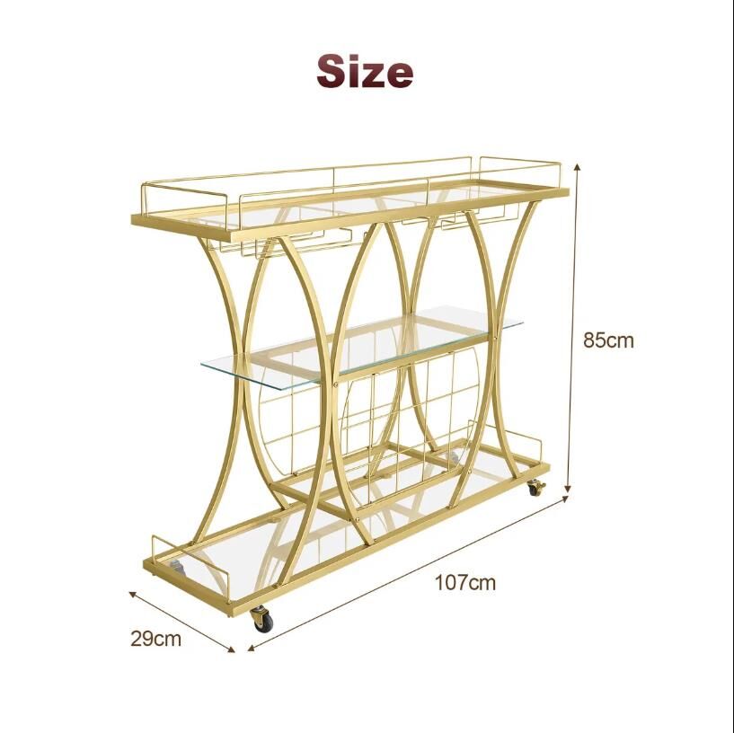 Bar Cart Wine Rack Drinks Trolley Gold Glass Holder Bar Serving Shelves Metal