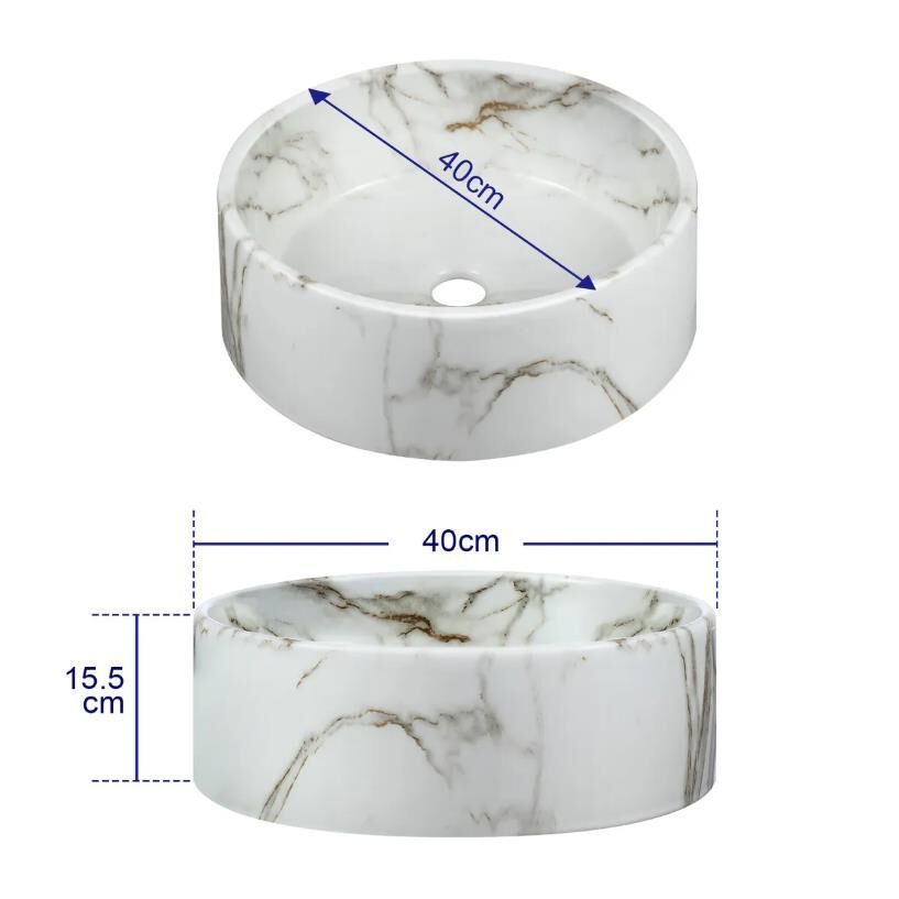 - The dimensions of the vessel sink are 40x40x15.5cm(LxWxH)