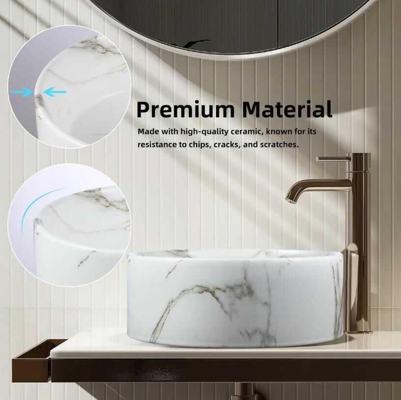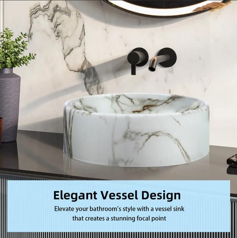 - Note: Each marbled vessel sink has a unique pattern that may slightly vary from the image shown.