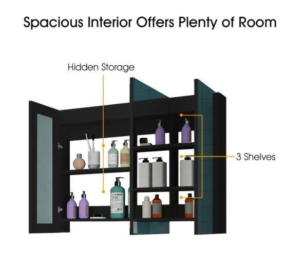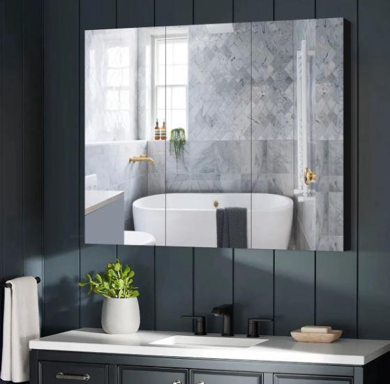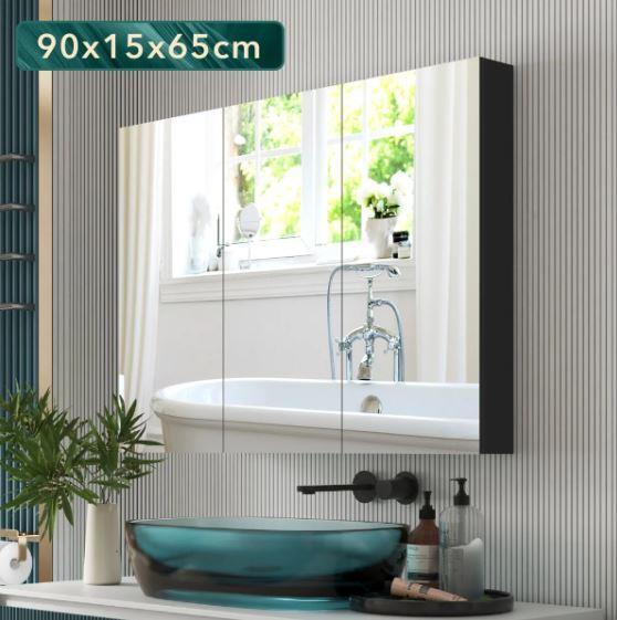 Build a clutter-free bathroom environment with this Bathroom Mirror Cabinet Medicine Shaving Storage Organiser. Featuring three high-definition mirror doors, our bathroom cabinet provides crystal-clear and undistorted reflection, enhancing your grooming or hair styling experience. Thanks to a robust and non-irritating PB structure, the bathroom organiser is safe and durable for years of use. Moreover, organise your toiletries and bathroom essentials neatly on its two large shelves and three small compartments while keeping easy access to your everyday items. Aside from easy setup, our bathroom wall cabinet is hassle-free to clean and maintain. Boasting a simple and fashionable design, it complements any bathroom decor, infusing a touch of elegance into the room.