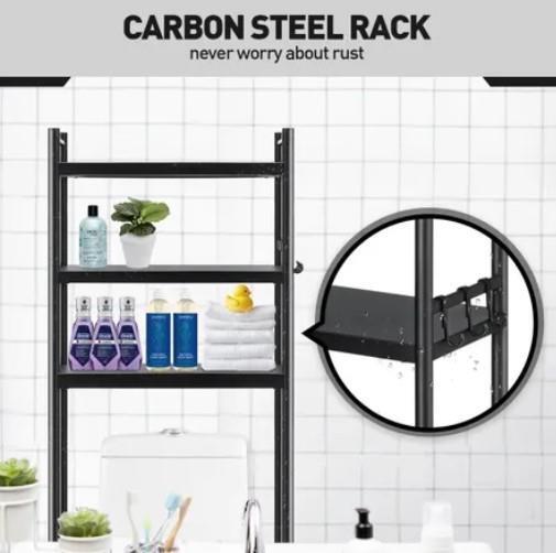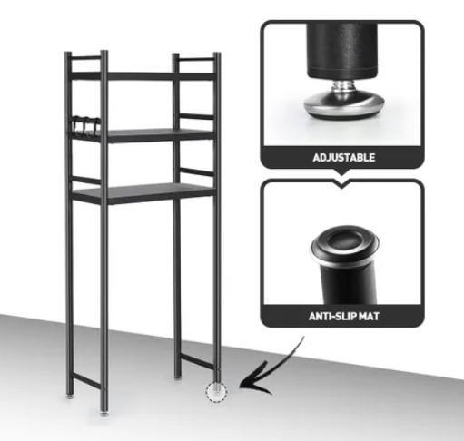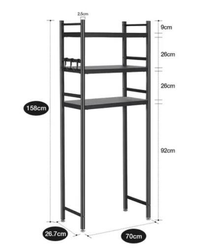 Keep all your bathroom essentials out of the way but still easily accessible with this 3-Tier Steel Freestanding Bathroom Rack Shelves Over Toilet Washer Shelf. The contemporary and versatile bathroom rack has three shelves, each of which can hold up to 20kg. Measuring roughly 70x26x158cm, this storage shelf is crafted from high-quality carbon steel and has a classic black painted finish which will complement most bathroom design schemes while providing ample storage space for toilet paper, towels, tissue boxes, cleaning supplies as well as skincare items. Furthermore, with six suction cups and anti-slip footpads, the above toilet storage rack is impressively sturdy and durable so that you do not need to worry about it wobbling or falling apart. Better still, the storage rack has adjustable feet and fits around most toilets. Plus, it is easy to assemble with the included installation accessories and instructions.