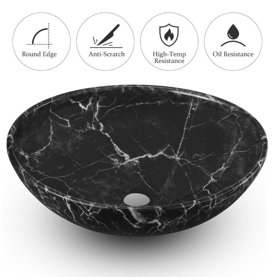 - Note: Each marbled vessel sink has a unique pattern varying slightly from the image.
