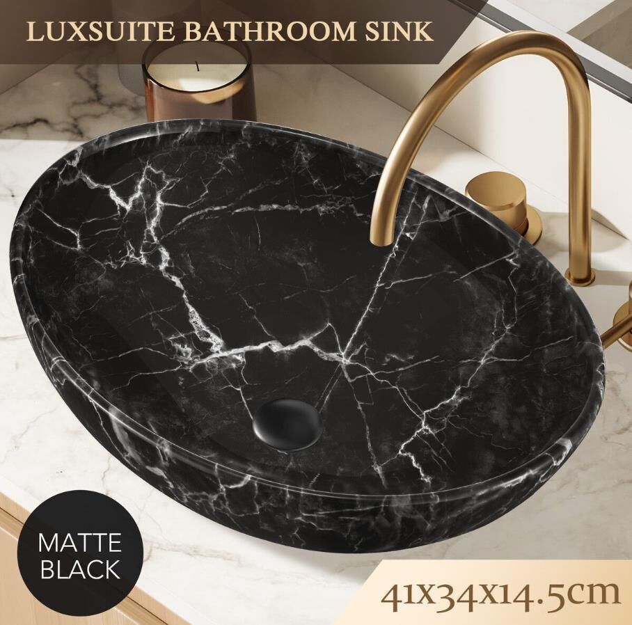 | Brand | Luxsuite | Material | Ceramic | Colour | Matte Black with marble pattern | Size | 41x34x14.5cm | Style | Modern | Package Content | 1 x Bathroom sink